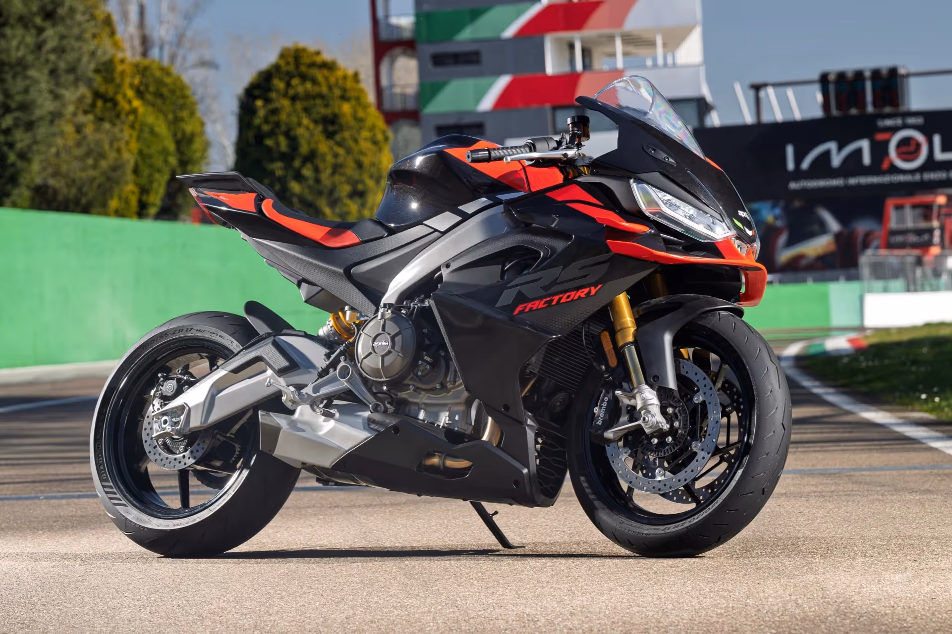 Die RS 660 Factory steht an der Spitze der Modellreihe dank einer erstklassigen Ausstattung und einer kompromisslos auf Racing ausgelegten DNA – für alle, die auf jeder Strecke das Maximum verlangen. Die RS 660 Factory bringt die Spitzenleistung des Öhlins Fahrwerks auf die Straße und beeindruckt mit aggressiver Optik, die sie als das sportlichste und raffinierteste Motorrad in ihrem Segment auszeichnet. Die von der MotoGP inspirierte Aerodynamik mit Winglets, der sportliche Zweizylindermotor mit 105 PS und das geringe Gewicht von nur 183 kg garantieren außergewöhnliche Performance. Mit einer Höchstgeschwindigkeit von 240 km/h ist die RS 660 Factory bereit, jede Kurve zu dominieren und ein unvergleichliches Fahrerlebnis zu bieten.