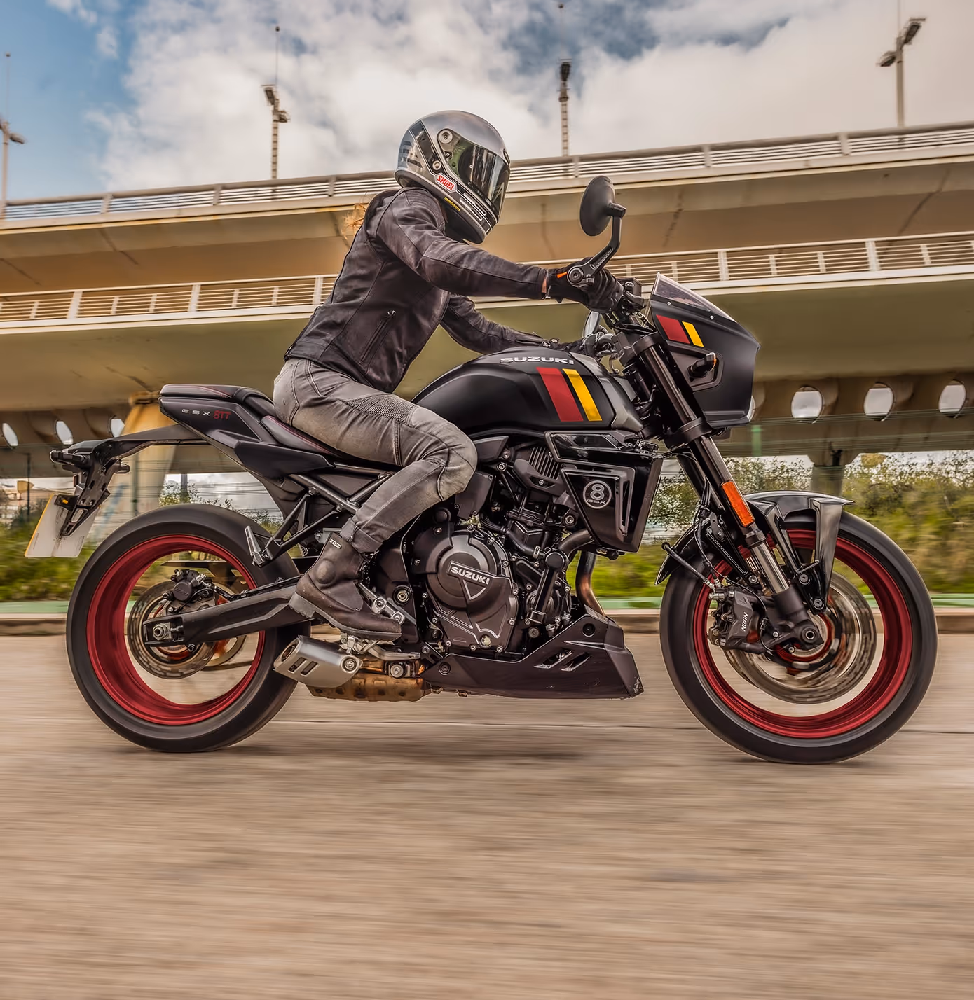 Erhältlich ist der Roadracer in Glass Sparkle Black und Pearl Mat Shadow Green. Erlebe die perfekte Symbiose aus Retro-Charme und modernster Performance – die GSX-8TT verbindet zeitloses Design mit der Drehfreude eines echten Sportmotorrads.