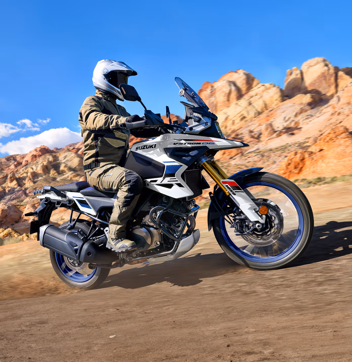 Erlebe die ultimative Freiheit abseits der StraĂe. Die V-Strom 1050DE ist dein perfekter Partner fĂŒr anspruchsvolle GelĂ€ndetouren