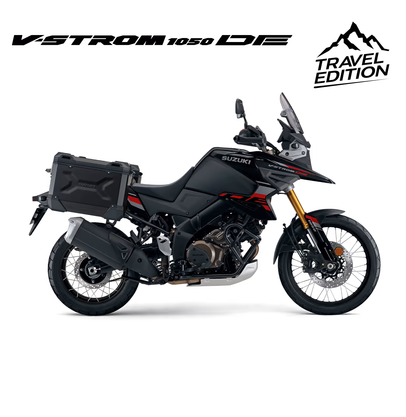 Die Suzuki V-Strom 1050DE Travel Edition kombiniert die robuste Offroad-Performance der V-Strom 1050DE mit zusĂ€tzlicher Touring-Ausstattung, ideal fĂŒr lange Reisen auf unterschiedlichstem Terrain. Angetrieben von einem kraftvollen 1037 cmÂł V-Twin-Motor mit 79 kW (107 PS), bietet sie beeindruckende Leistung und ZuverlĂ€ssigkeit. Das Fahrwerk ist mit einem 21-Zoll-Vorderrad, lĂ€ngerer Aluminium-Schwinge und erhöhter Bodenfreiheit speziell fĂŒr Offroad-Abenteuer konzipiert. Die Travel Edition erweitert die Ausstattung um robuste Aluminium-Seitenkoffer mit jeweils 37 Litern Volumen, die ausreichend Stauraum fĂŒr GepĂ€ck bieten. ZusĂ€tzlich sorgen Enduro-FuĂrasten fĂŒr verbesserten Halt und Komfort auf unebenem GelĂ€nde. Moderne Technologien wie das Suzuki Intelligent Ride System (S.I.R.S.) mit verschiedenen Fahrmodi, Traktionskontrolle und bidirektionalem Quick-Shifter gewĂ€hrleisten ein sicheres und komfortables Fahrerlebnis. Das 5-Zoll-TFT-Farbdisplay liefert alle wichtigen Informationen auf einen Blick. Mit einem Leergewicht von 252 kg und einem 20-Liter-Tank ist die V-Strom 1050DE Travel Edition bereit fĂŒr ausgedehnte Touren, die sowohl auf als auch abseits befestigter StraĂen stattfinden.