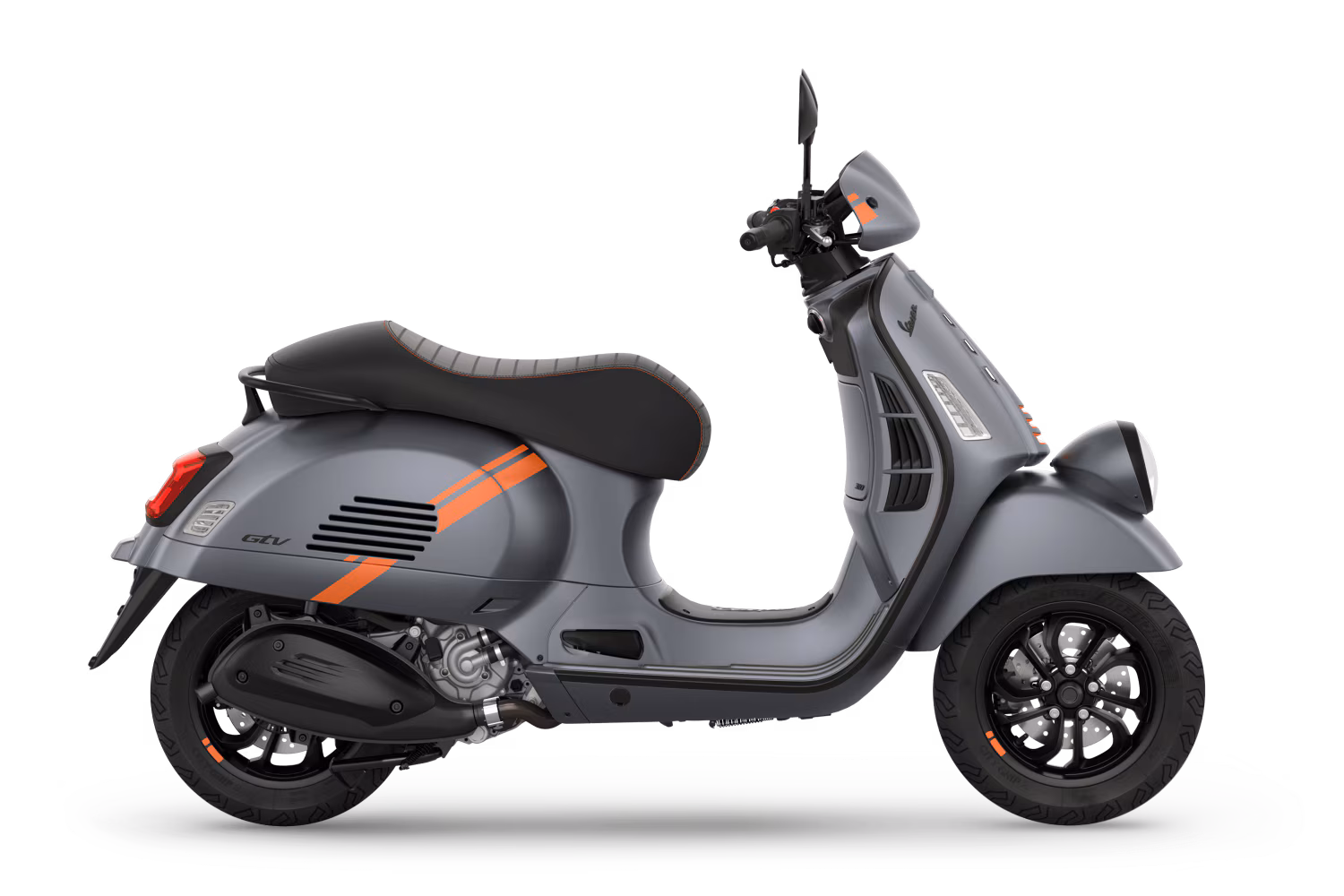 Die Vespa GTV überzeugt mit matten Farben, kontrastierenden Grafikelementen und einer Sportsitzbank im Einsitzer-Look. Moderne Technologien wie das Keyless-System und das volldigitale Display harmonieren perfekt mit den klassischen Designelementen.